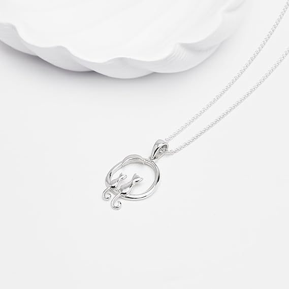 Add a touch of fashion with this charming 925 sterling silver cat on the moon pendant necklace. Featuring two elegant feline silhouettes nestled under a crescent moon, this piece captures a romantic and whimsical spirit. Handmade from high-quality sterling silver, the pendant comes complete with a 45cm silver chain and is presented in a TreasureBay gift box – making it an ideal present for women and girls who adore unique, meaningful jewellery.