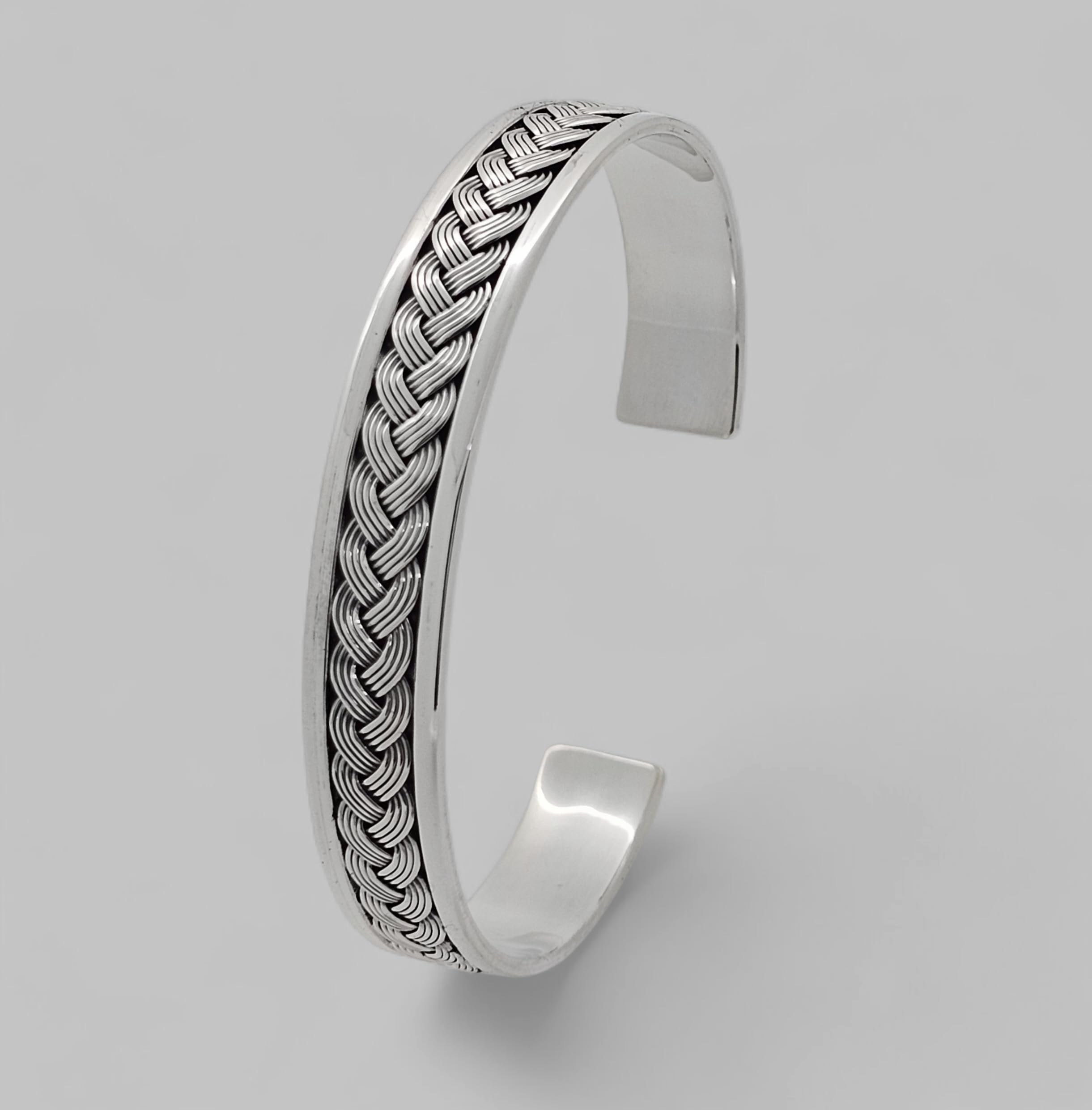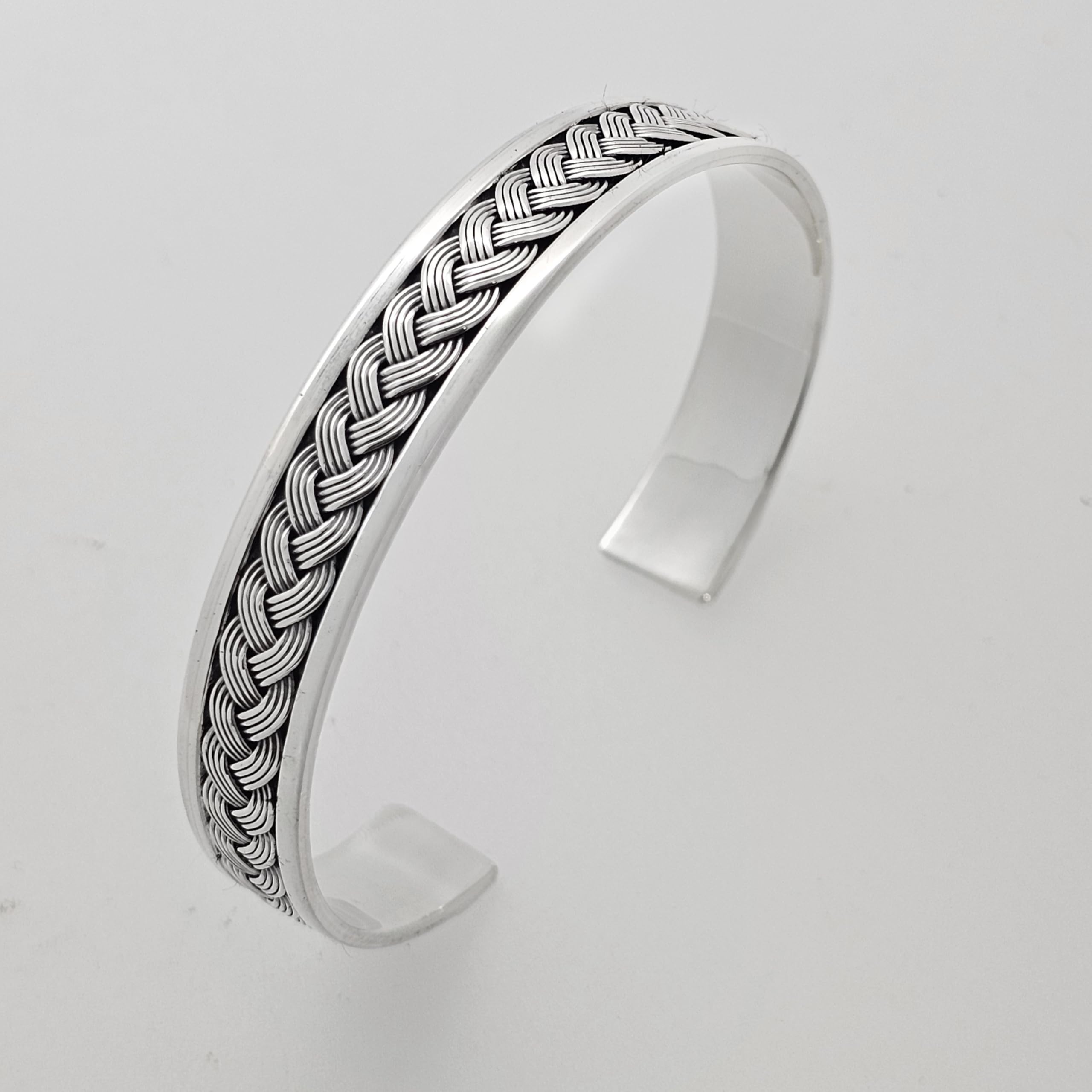 Handmade 11Mm Braided Silver Bangle Bracelet - Open Cuff Asjustable