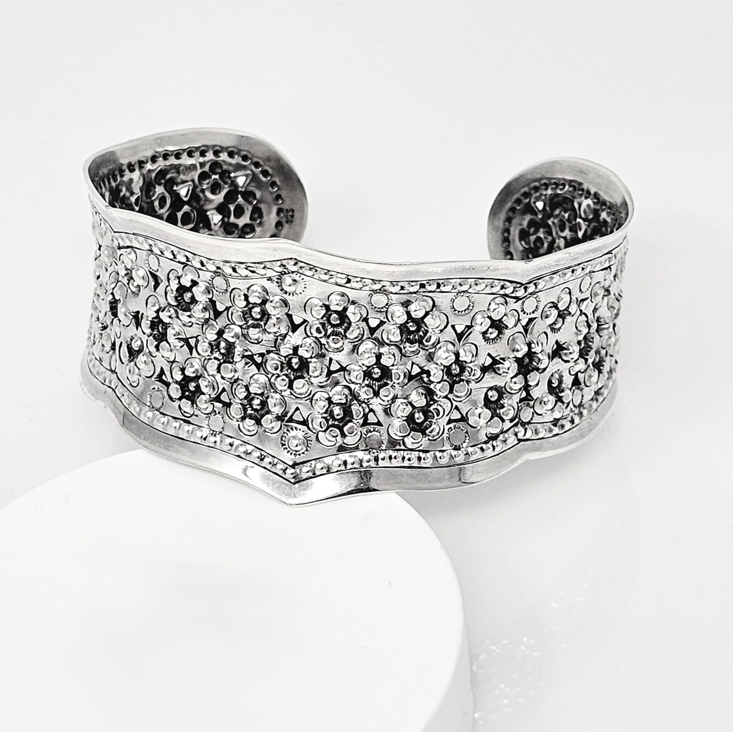 - Handmade Sterling Silver Bangle – Expertly crafted from solid 925 sterling silver with a delicate floral design.